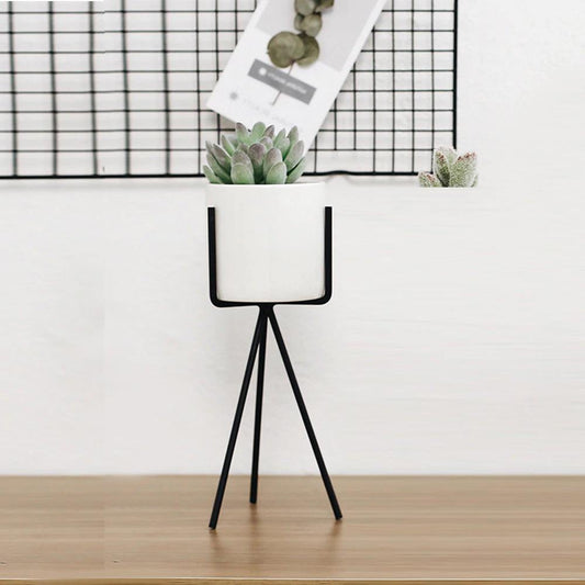 Oasis Ceramic Planter with Geometric Metal Stand